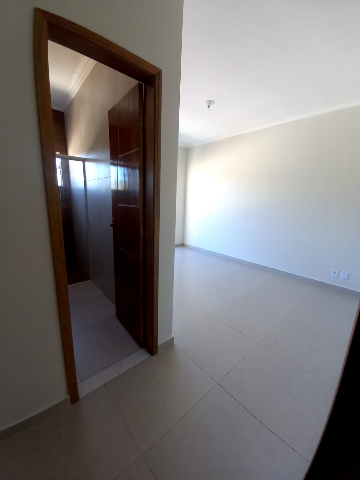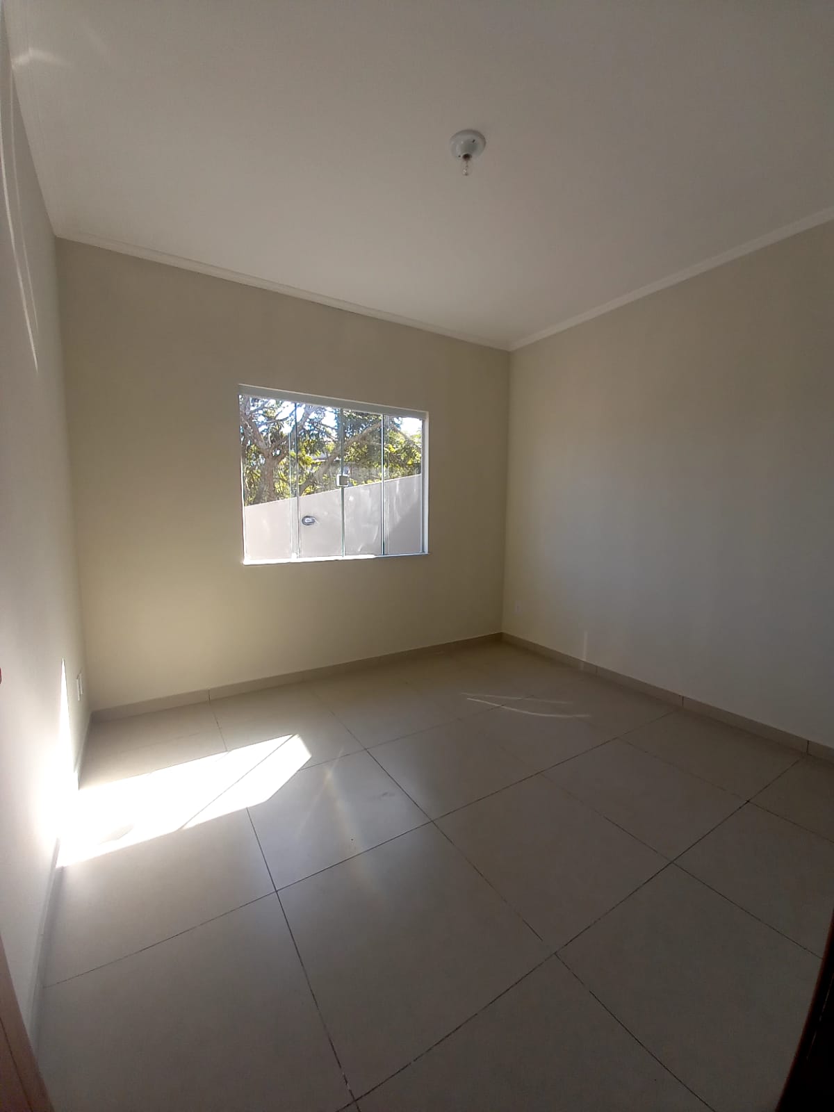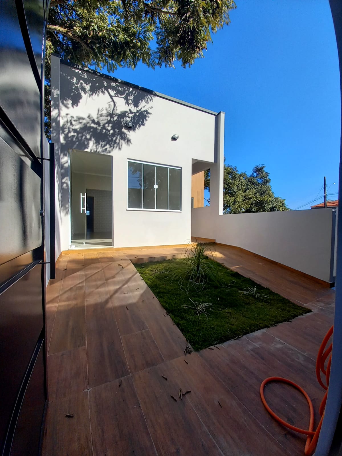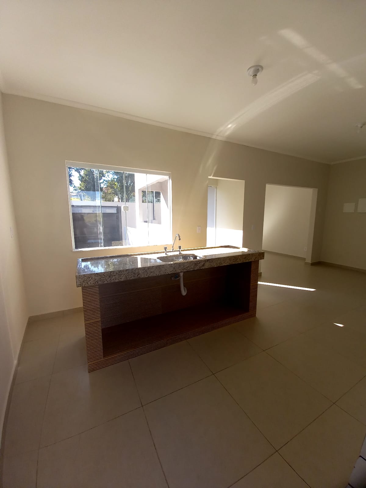 Casa com 3 quartos sendo 1 suíte com varanda, sala, cozinha americana, banheiro social, área de serviço, suíte independente, garagem e quintal.