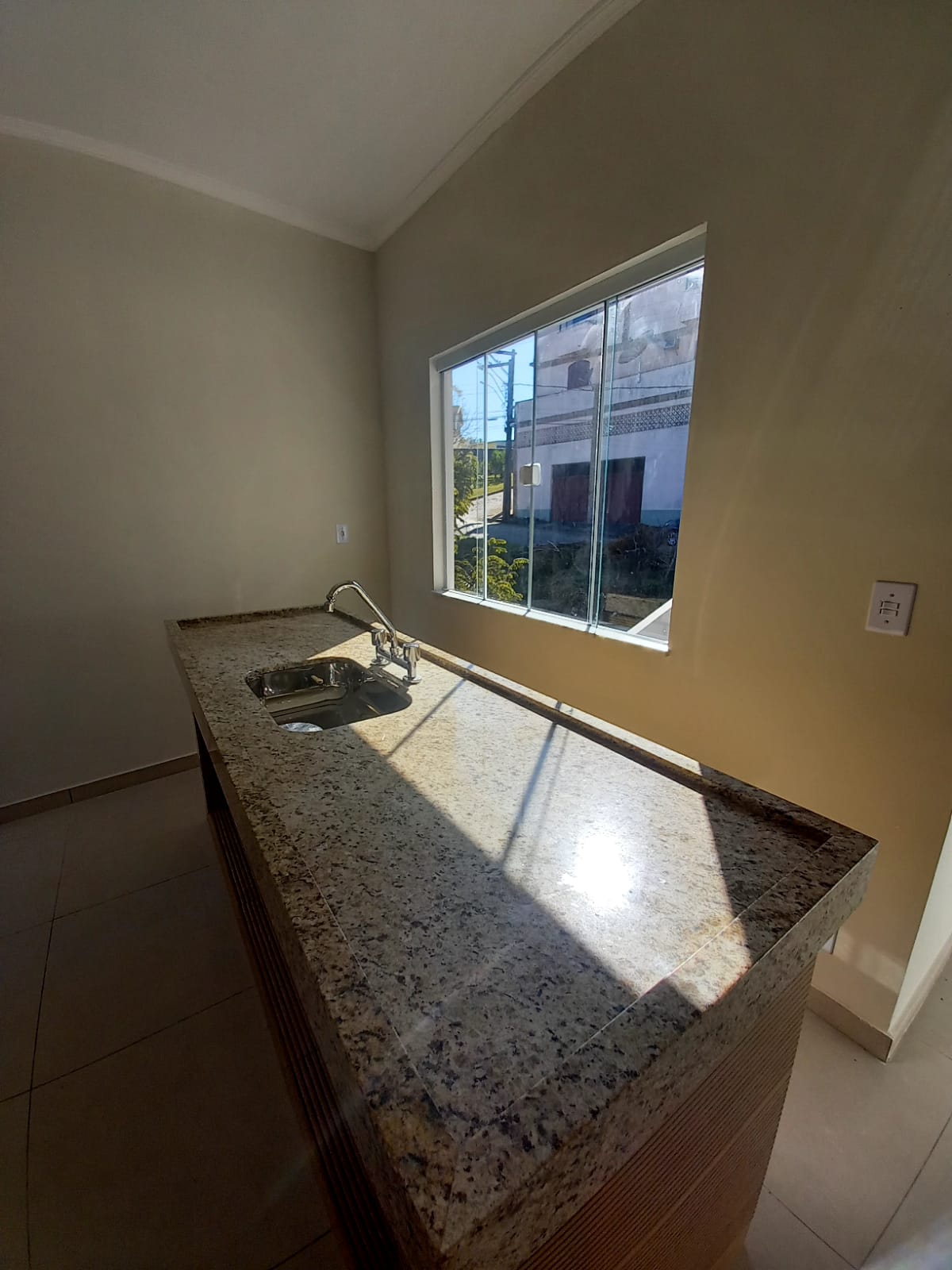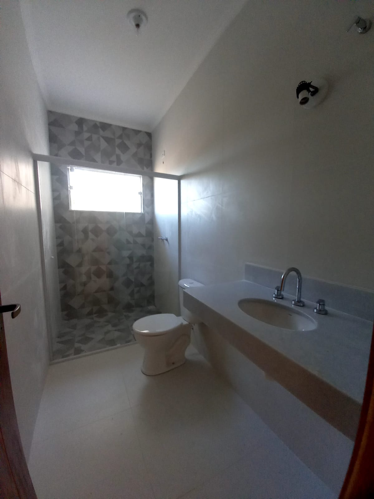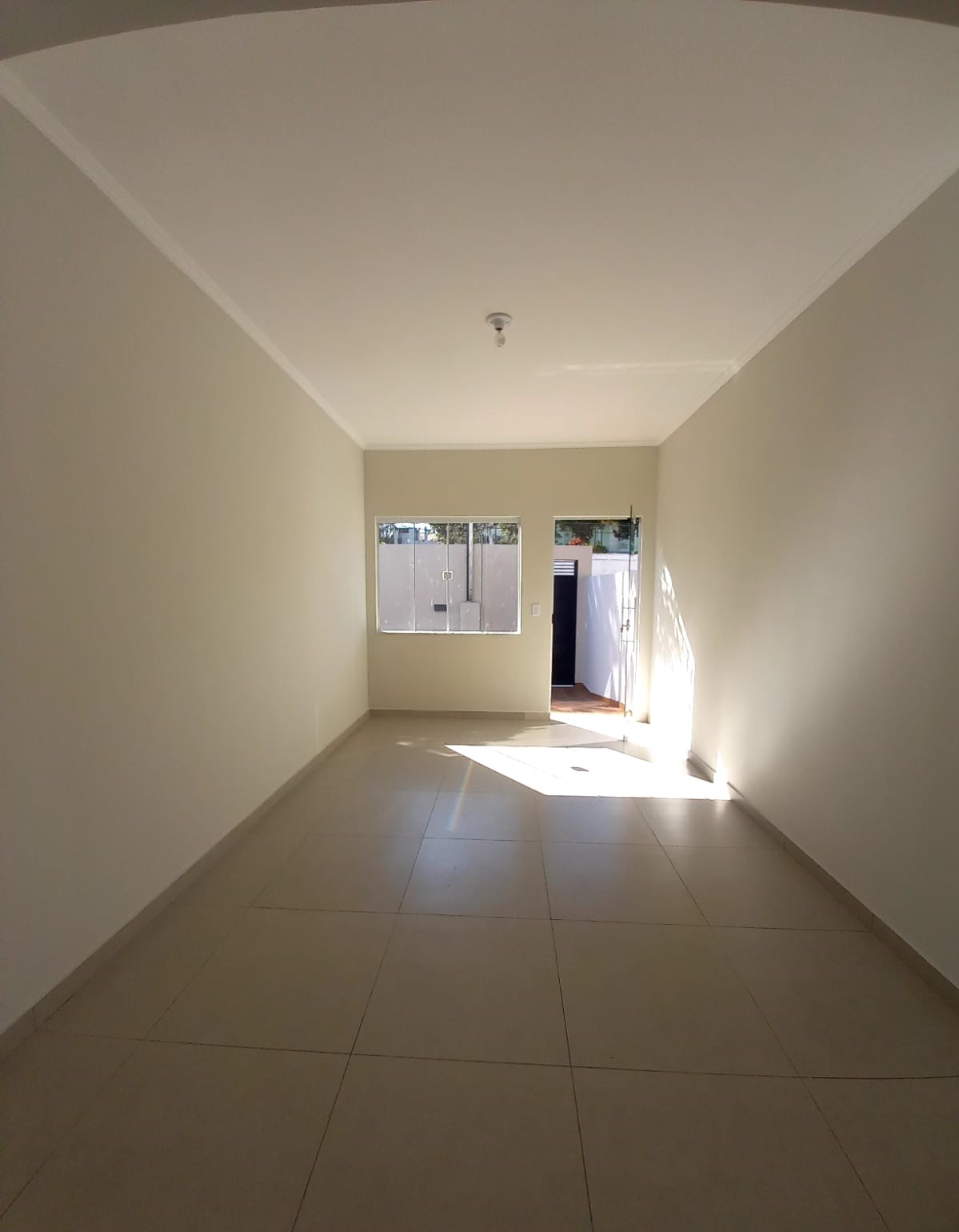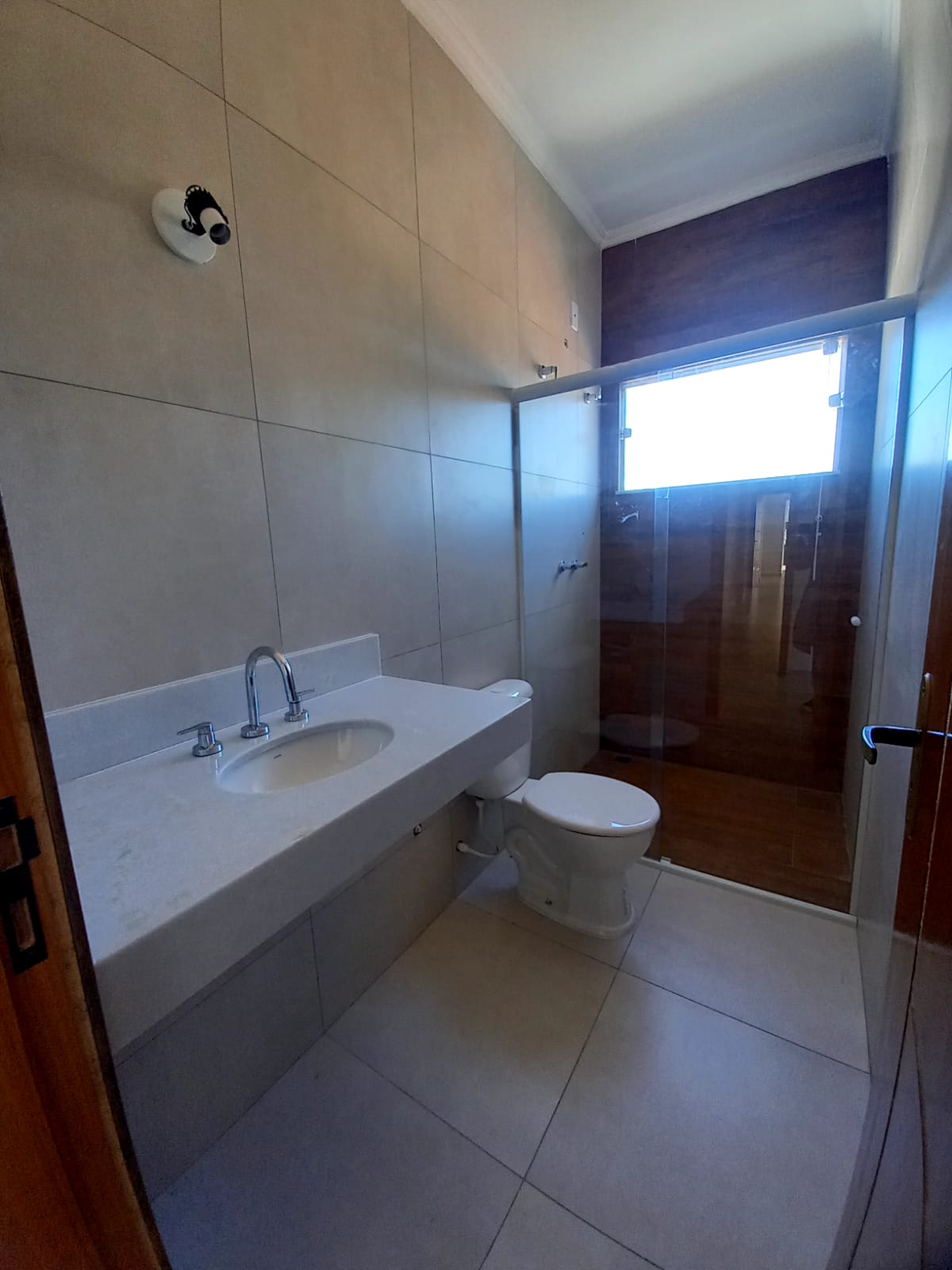 Casa com 3 quartos sendo 1 suíte com varanda, sala, cozinha americana, banheiro social, área de serviço, suíte independente, garagem e quintal.
