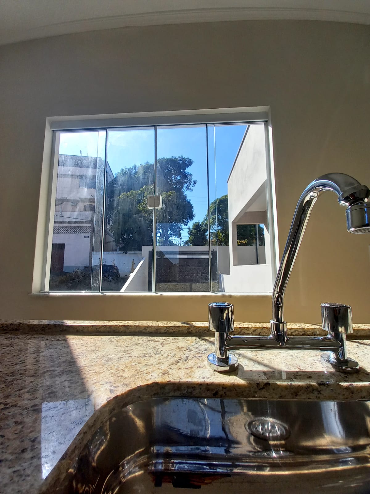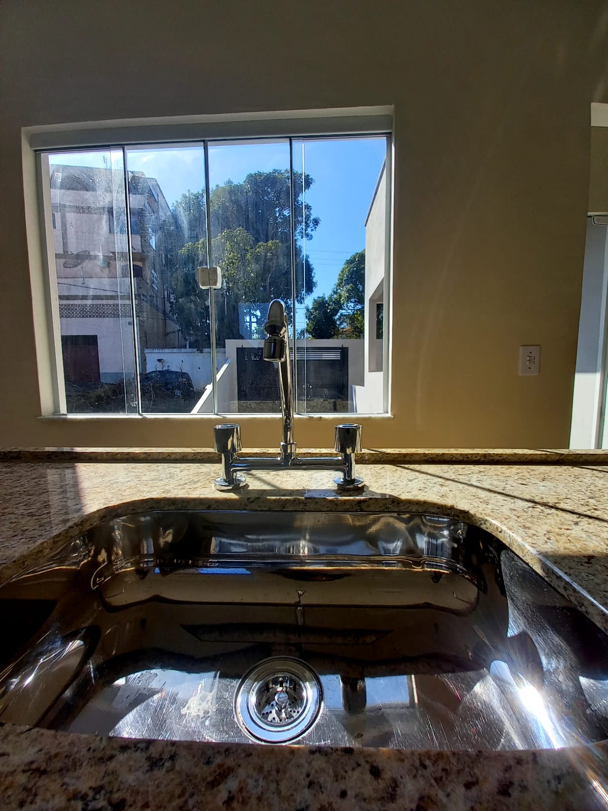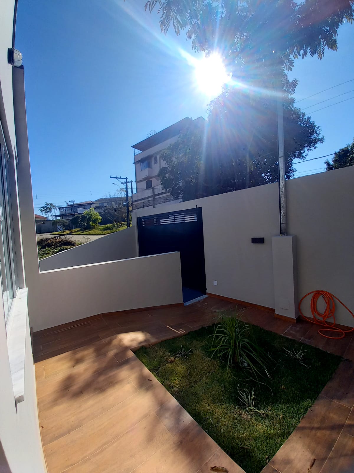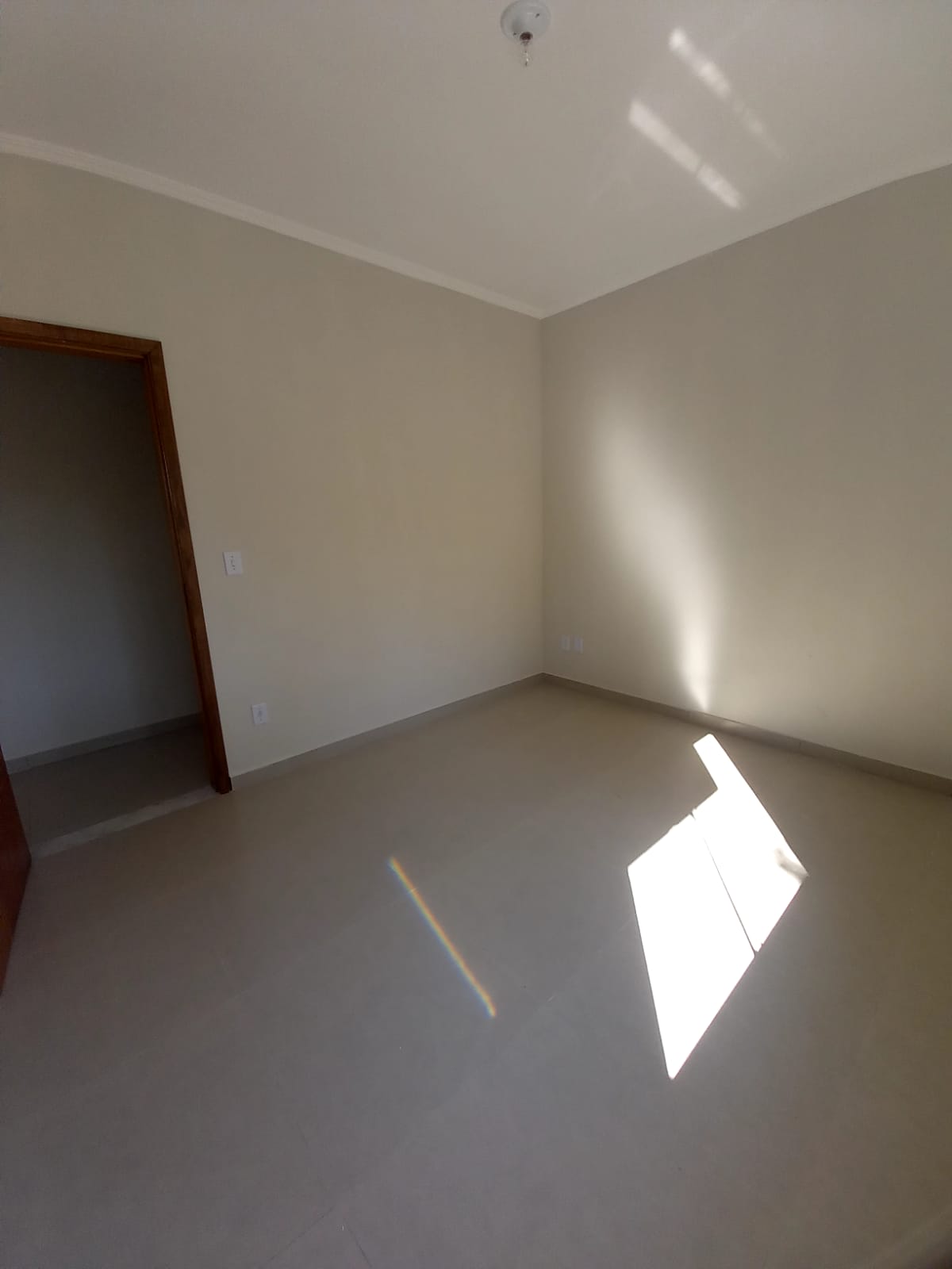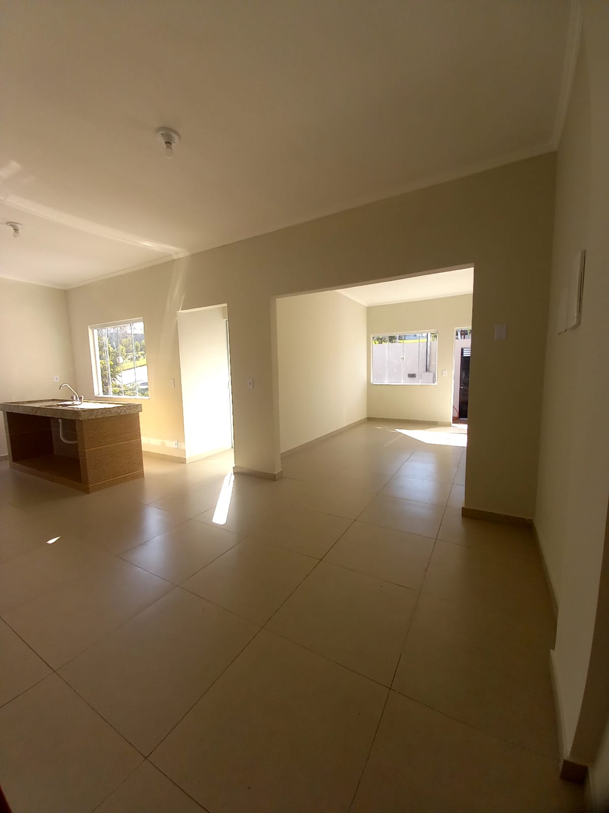 Casa com 3 quartos sendo 1 suíte com varanda, sala, cozinha americana, banheiro social, área de serviço, suíte independente, garagem e quintal.