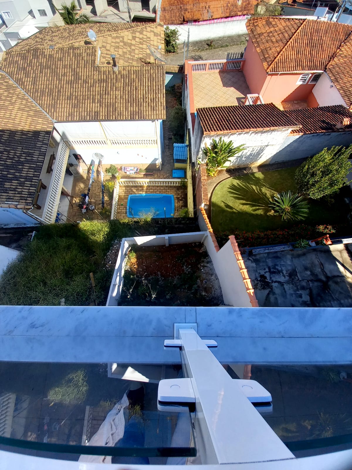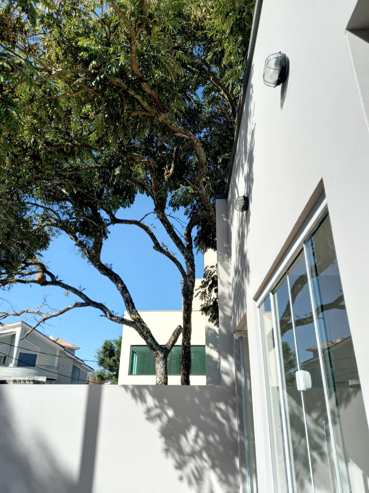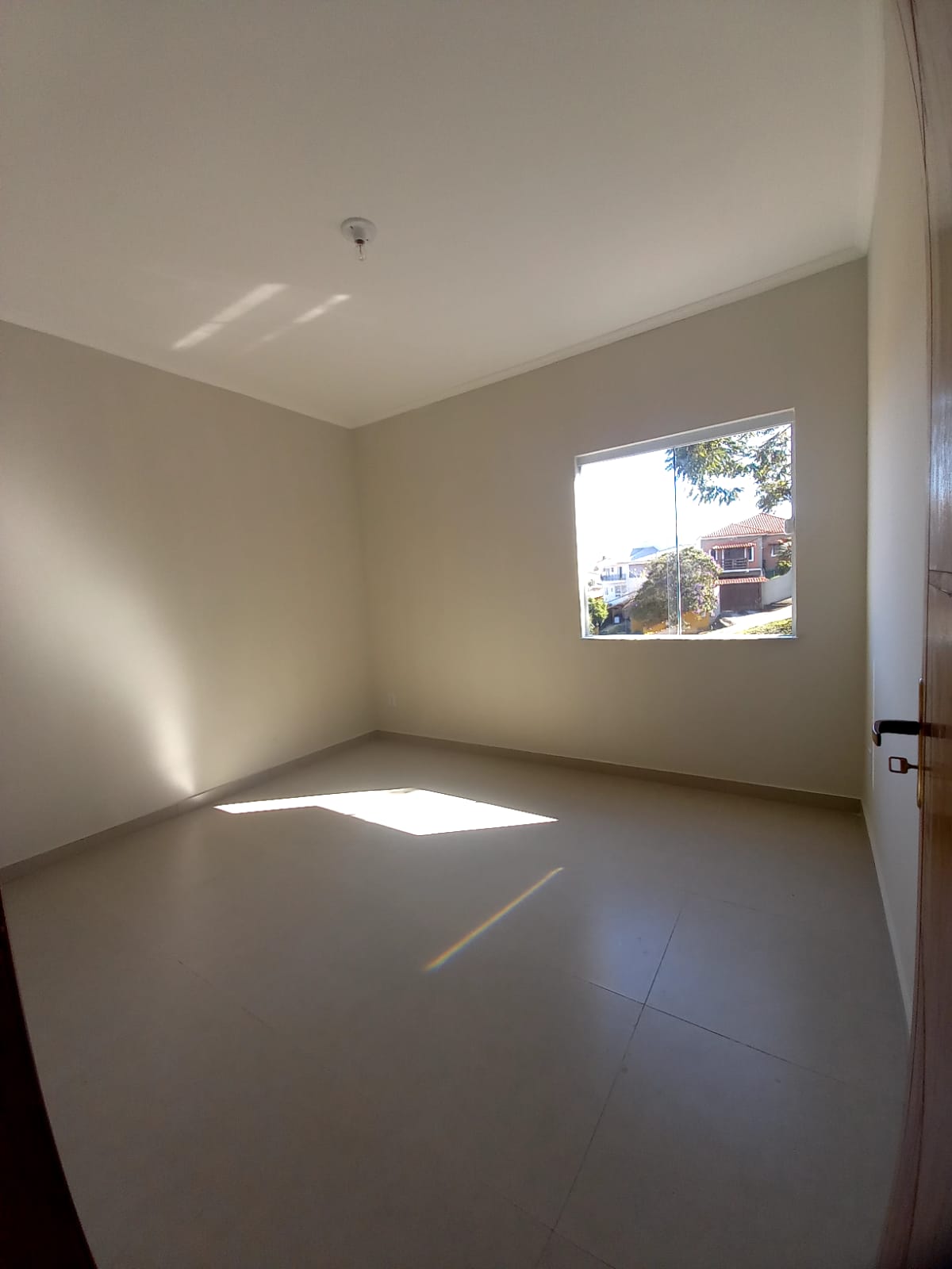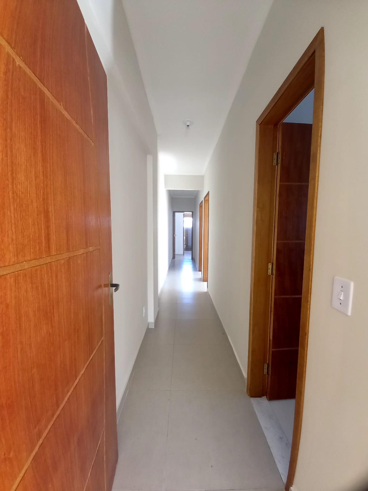 Casa com 3 quartos sendo 1 suíte com varanda, sala, cozinha americana, banheiro social, área de serviço, suíte independente, garagem e quintal.