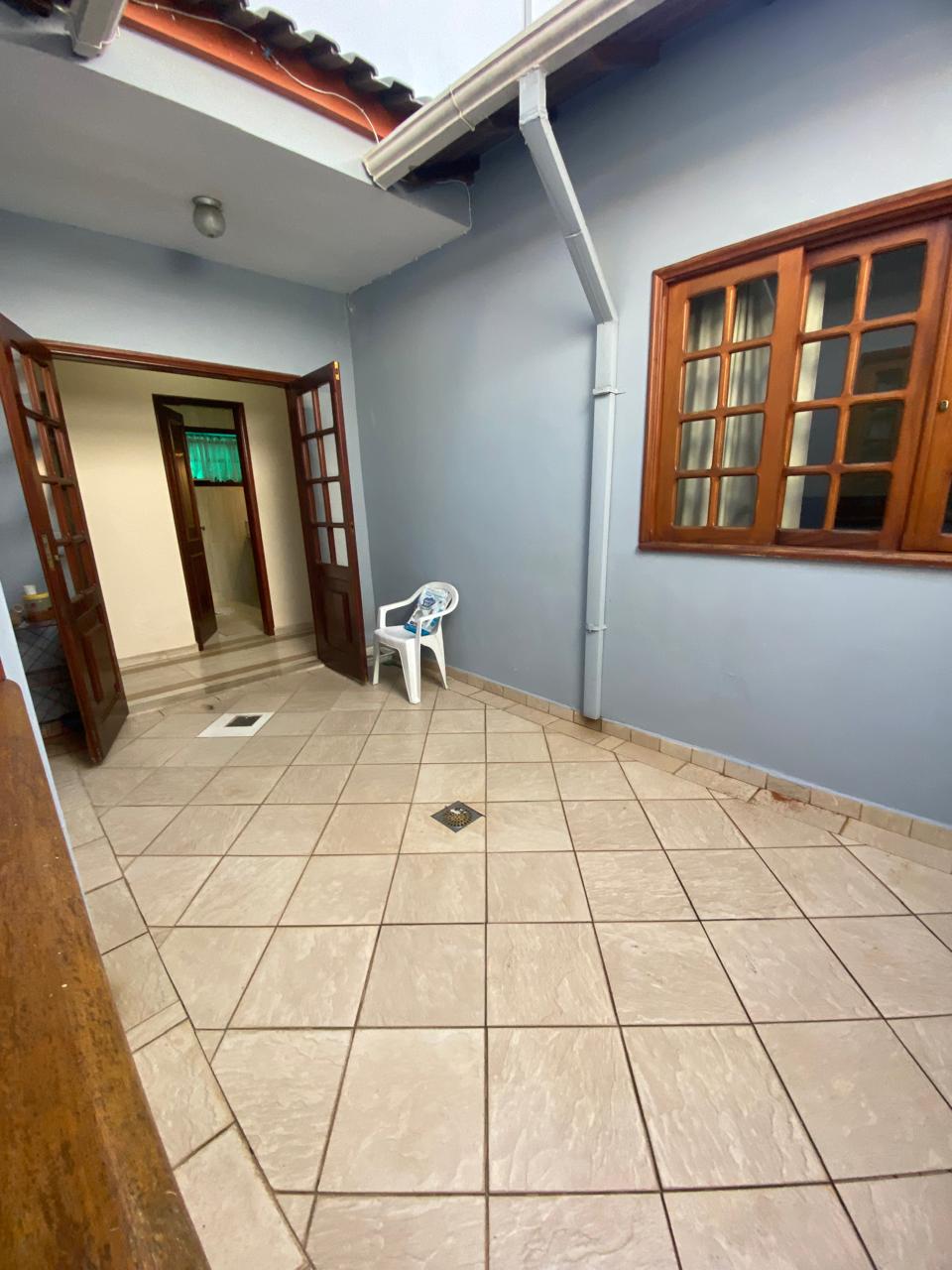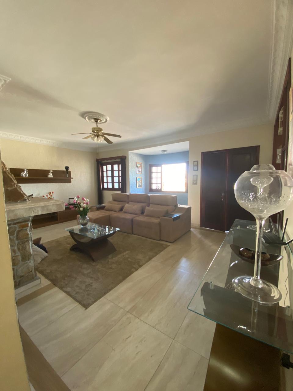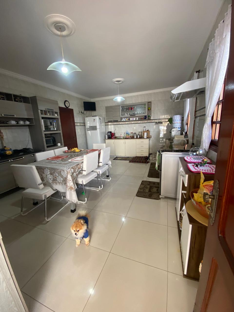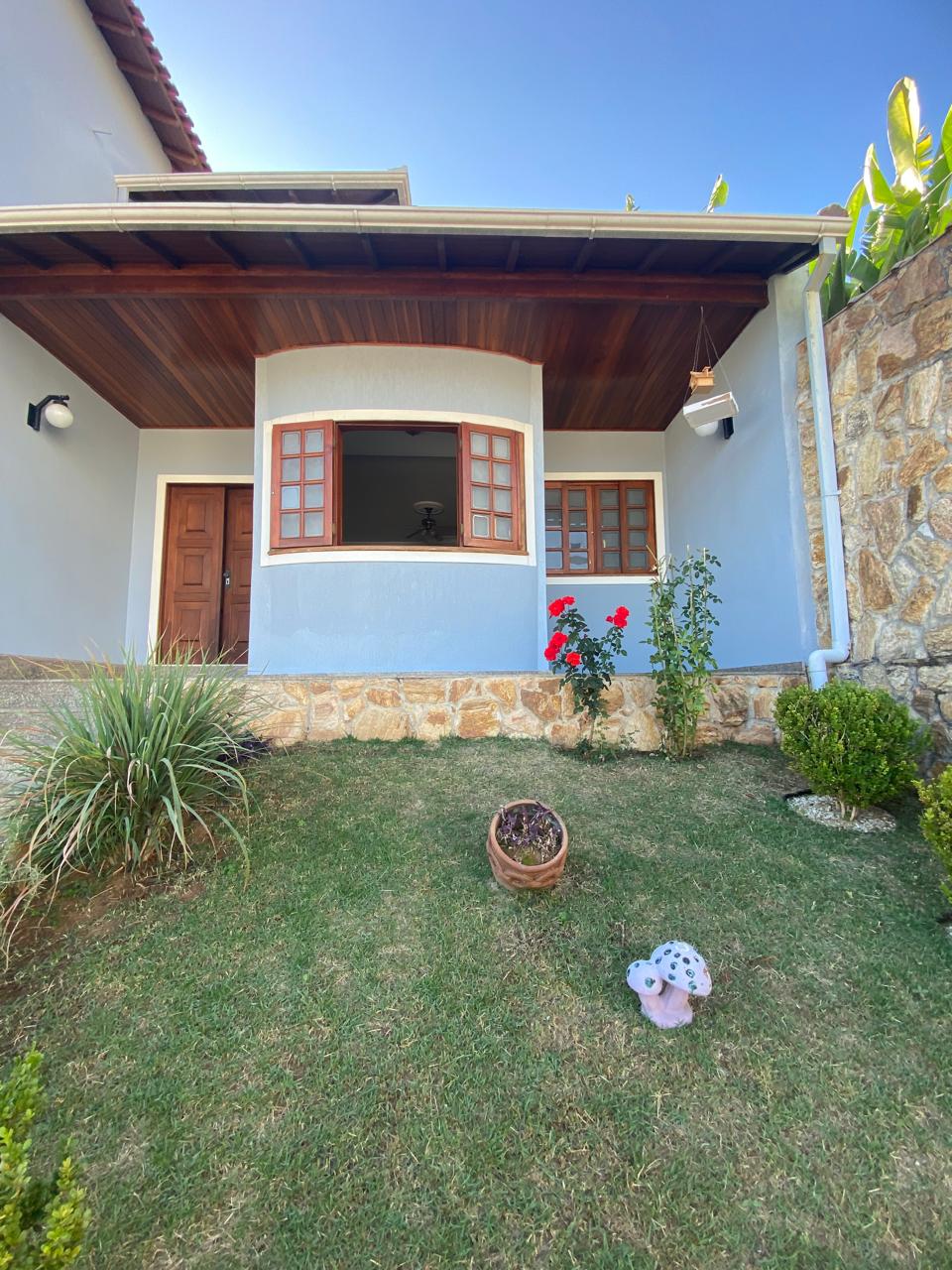 Contém 3 quartos sendo 1 suíte, banheiro social, sala de estar com lareira, sala de TV, copa, cozinha, terraço, área de serviço, área de lazer com churrasqueira, ducha e piscina, quarto e banheiro de serviço, jardim de inverno, quintal, jardim, varanda, garagem para 3 carros.
