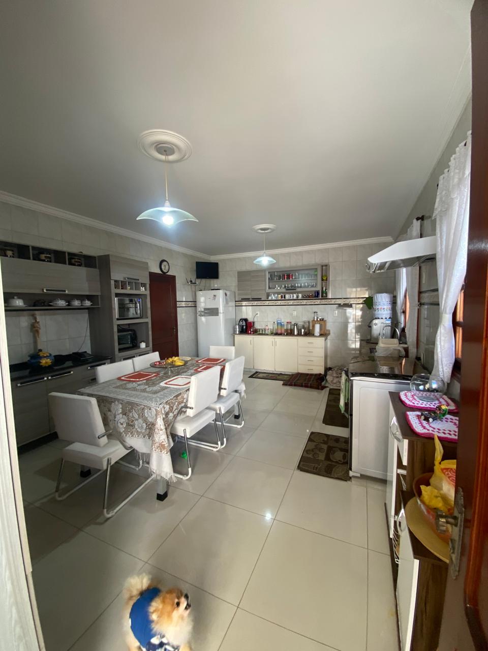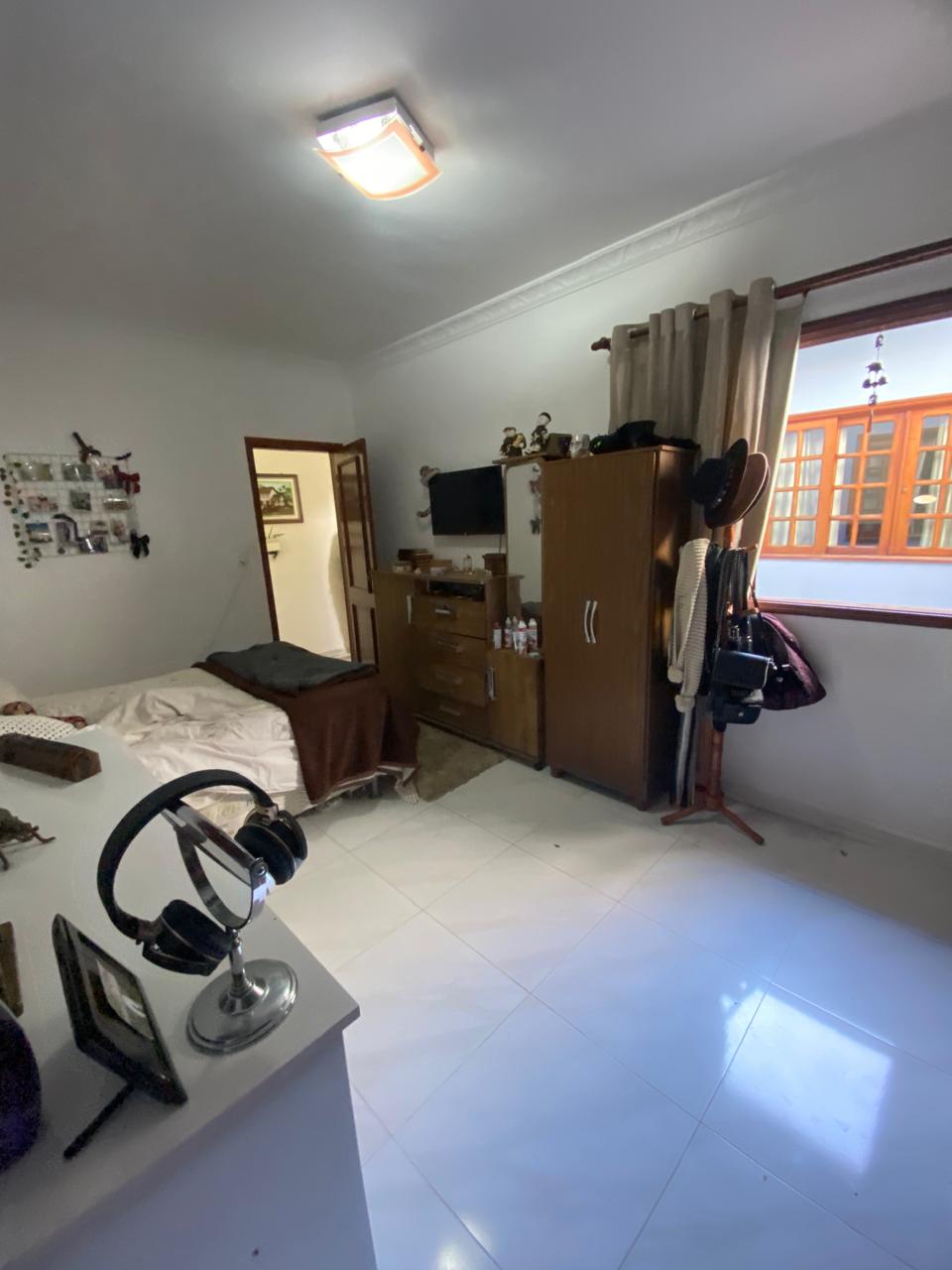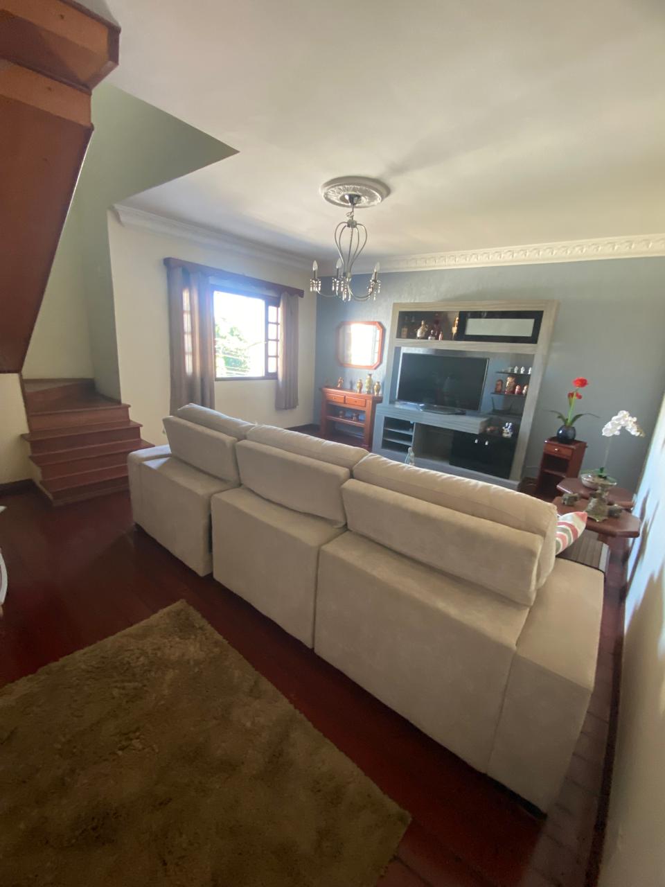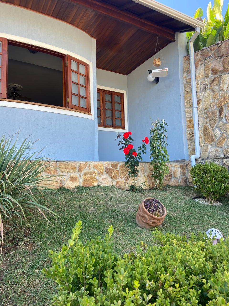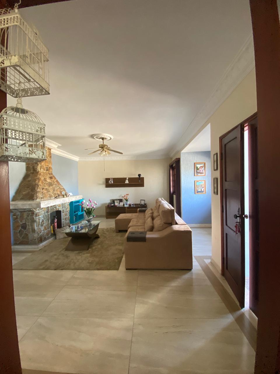 Contém 3 quartos sendo 1 suíte, banheiro social, sala de estar com lareira, sala de TV, copa, cozinha, terraço, área de serviço, área de lazer com churrasqueira, ducha e piscina, quarto e banheiro de serviço, jardim de inverno, quintal, jardim, varanda, garagem para 3 carros.