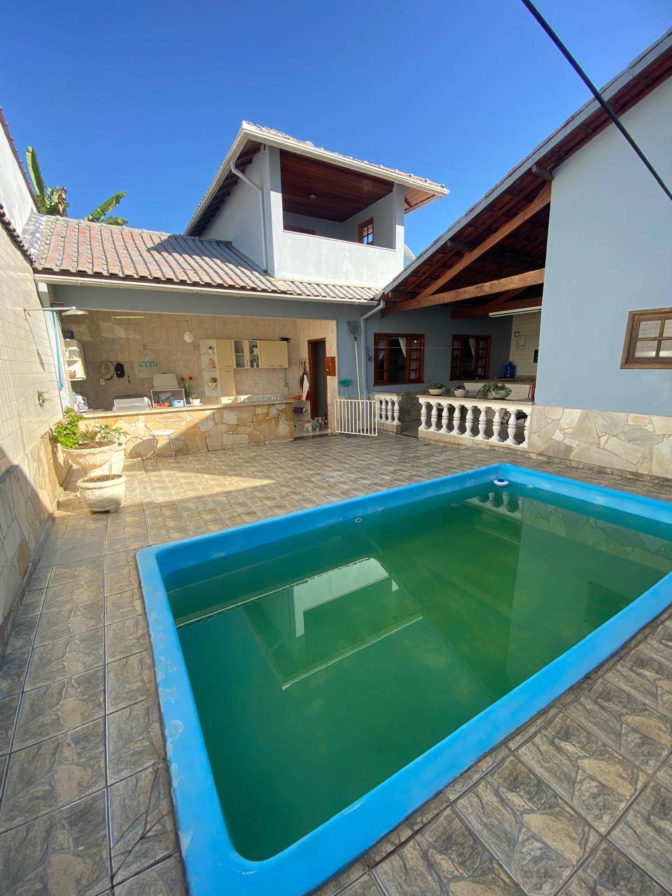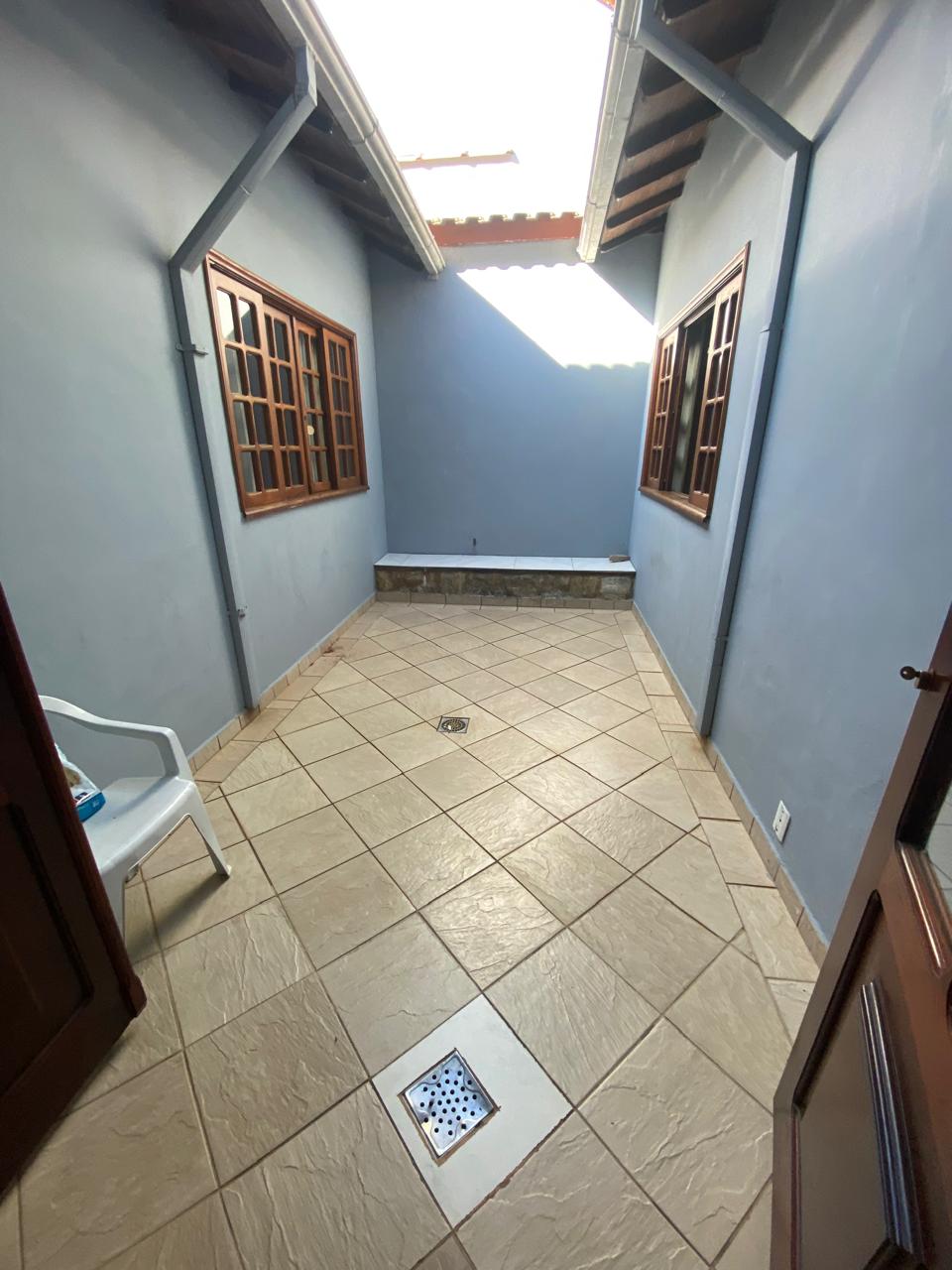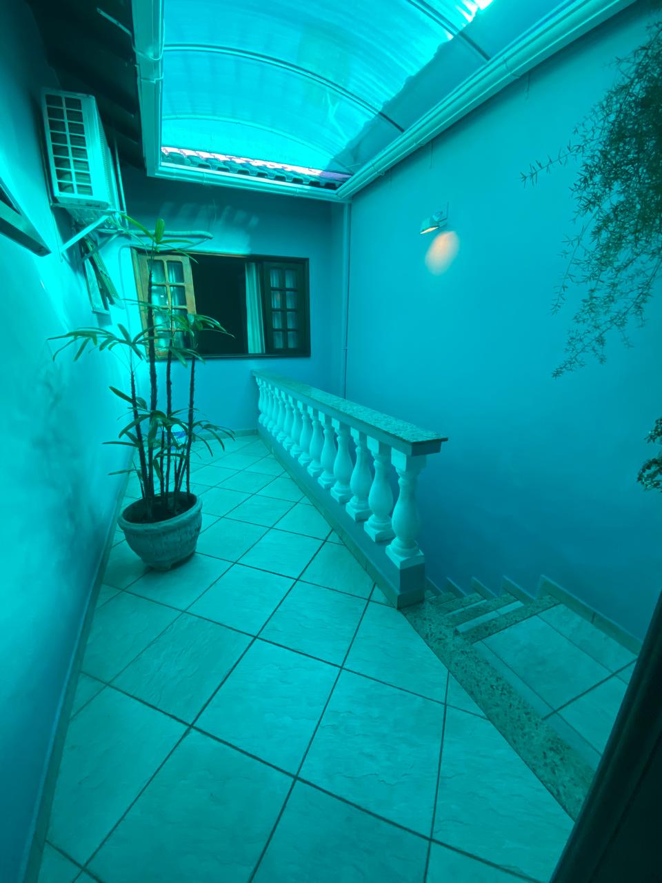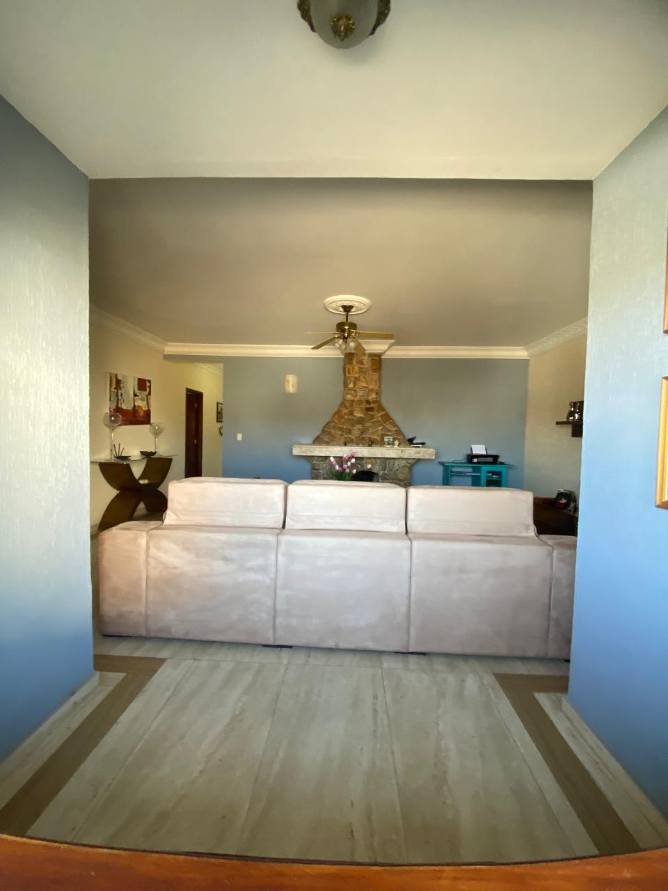 Contém 3 quartos sendo 1 suíte, banheiro social, sala de estar com lareira, sala de TV, copa, cozinha, terraço, área de serviço, área de lazer com churrasqueira, ducha e piscina, quarto e banheiro de serviço, jardim de inverno, quintal, jardim, varanda, garagem para 3 carros.