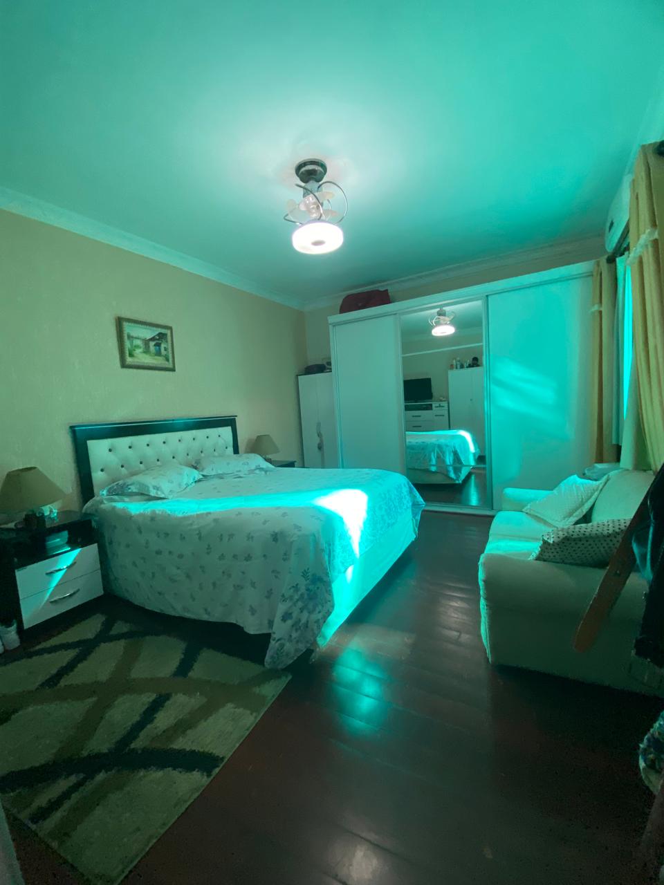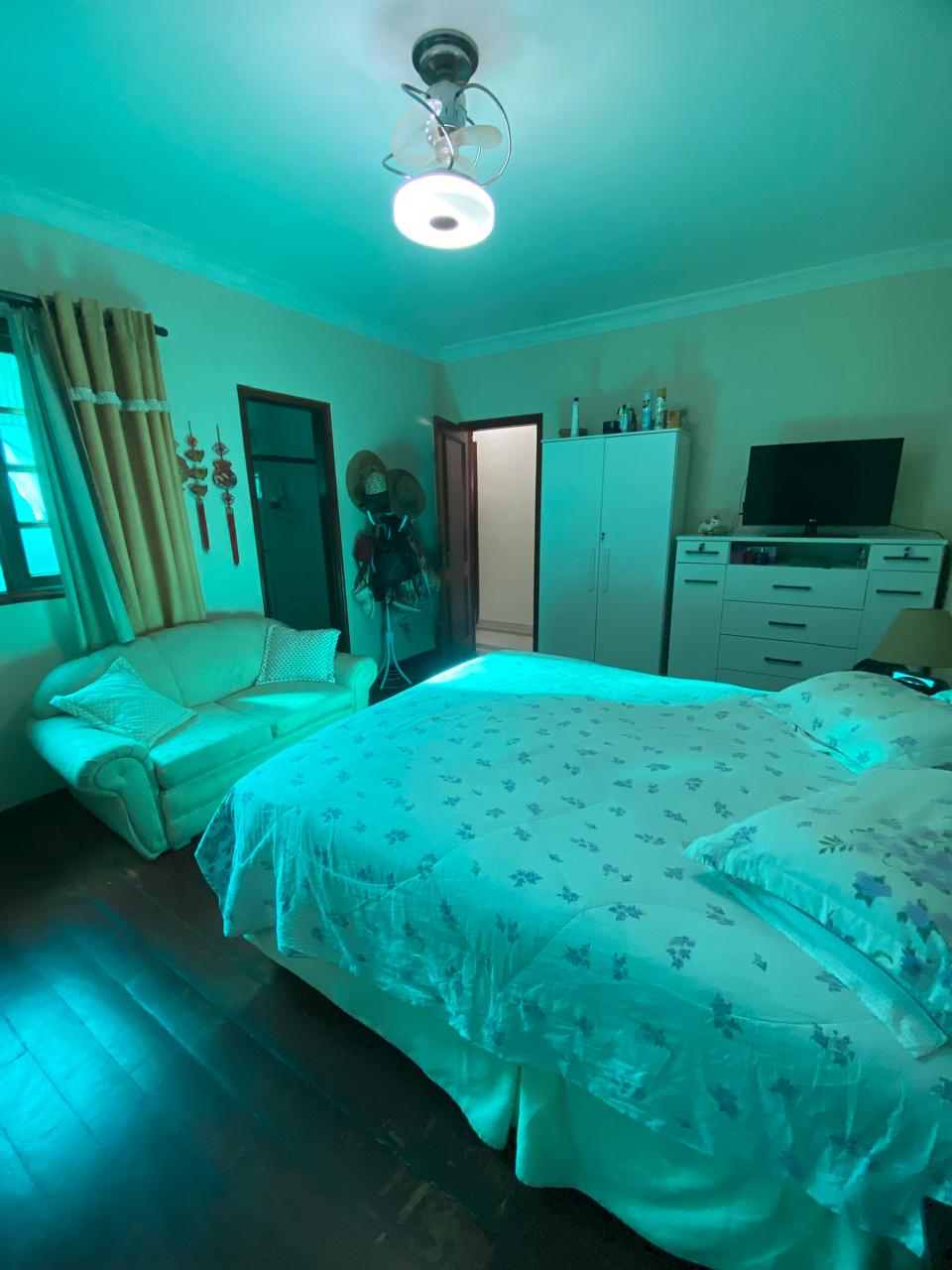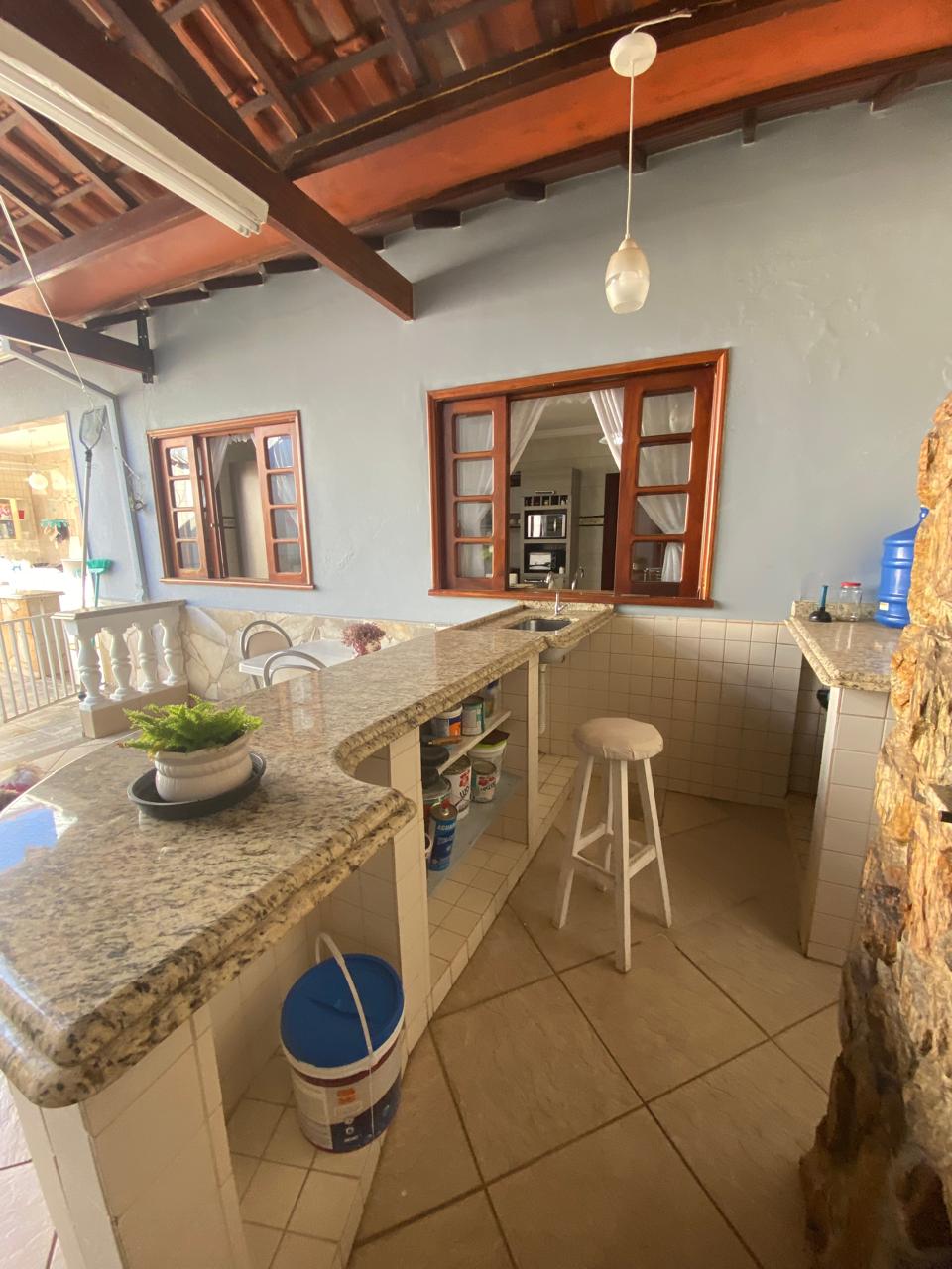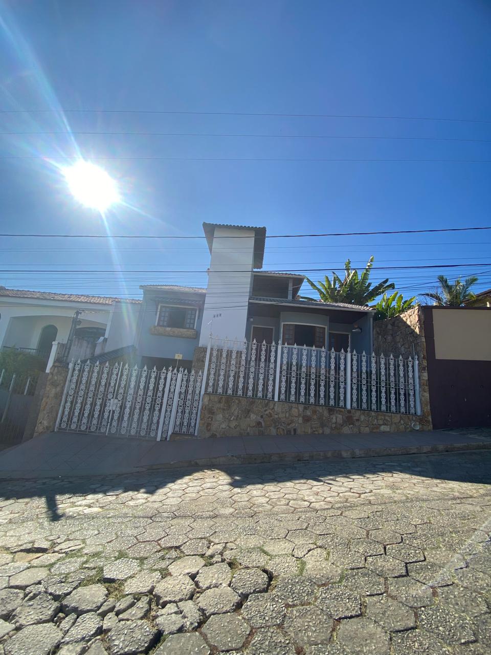 Contém 3 quartos sendo 1 suíte, banheiro social, sala de estar com lareira, sala de TV, copa, cozinha, terraço, área de serviço, área de lazer com churrasqueira, ducha e piscina, quarto e banheiro de serviço, jardim de inverno, quintal, jardim, varanda, garagem para 3 carros.